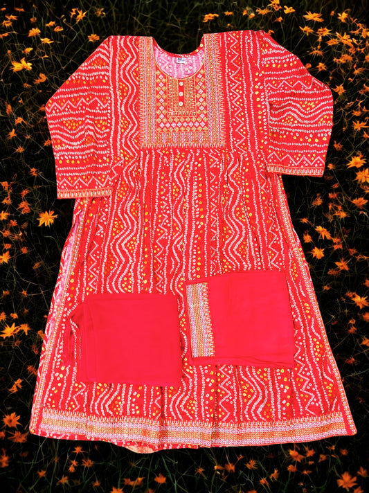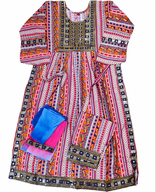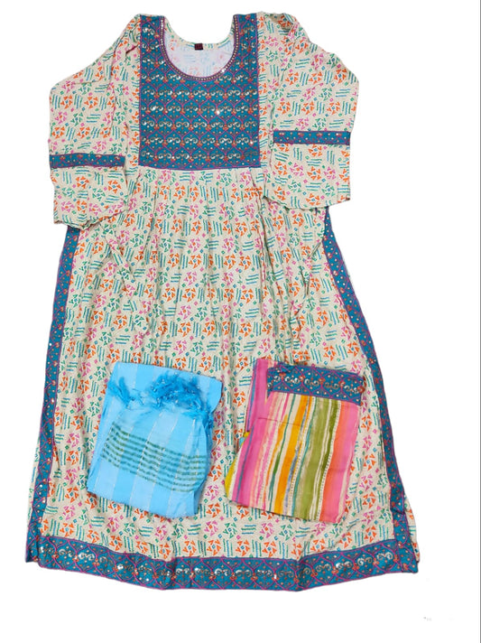 Embroidered Anarkali Dress with Matching Dupatta and Pants