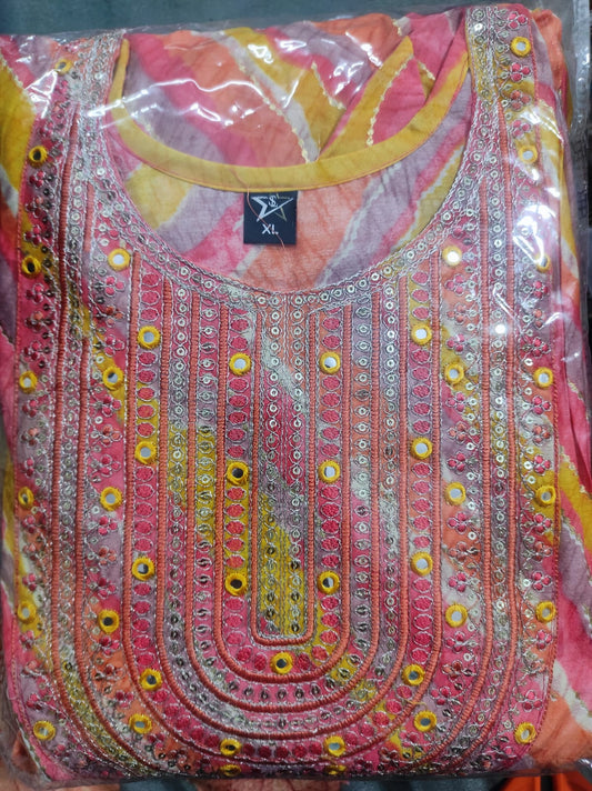 Elegant Multicolor Embroidered Kurti with Matching Pants and Dupatta