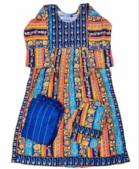Royal touch Print Flared Kurti Set for Women - Multicolor with Dupatta
