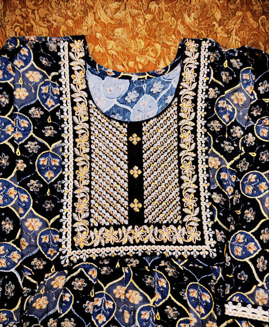 Embroidered Anarkali Dress with Matching Dupatta and Pants